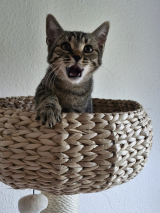 Er wurde sofort erfolgreich behandelt. Heute gilt er als gesund. Alle Unterlagen von der Tierklinik, Blutbilder, Berichte, werden mitgegeben. Beide sind verspielt, neugierig und sehr akriv. In der neuen Umgebung brauchen sie vielleicht ein paar Tage zur Eingewöhnung und verstecken sich. Wenn sie Vertrauen gefasst haben, zeigen sie schnell ihr fröhliches, junges Katzenleben.
